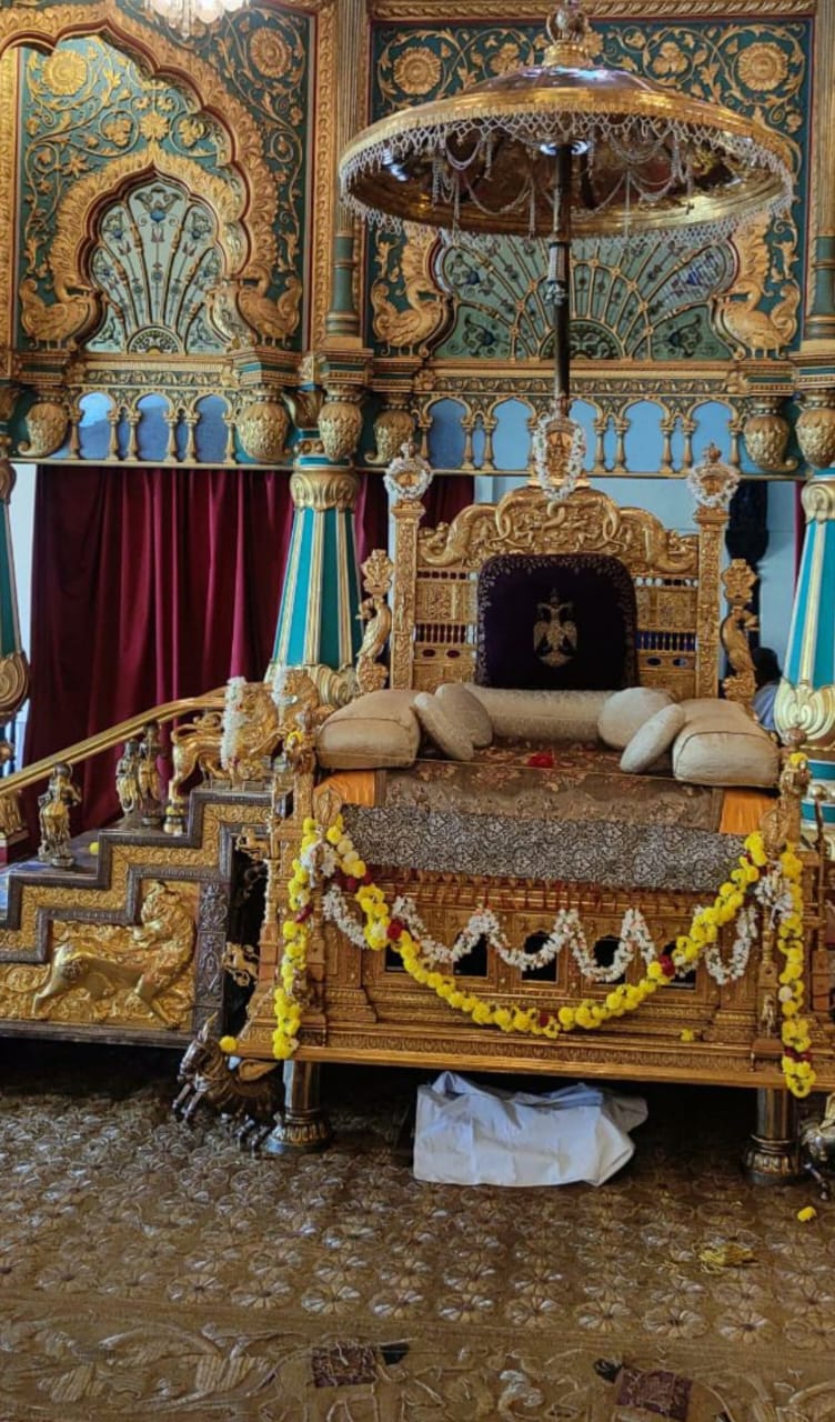 Mysuru: The Golden Throne of Wadiyars the erstwhile rulers of Mysuru was assmebled at Durbar Hall of Mysuru Palace on...