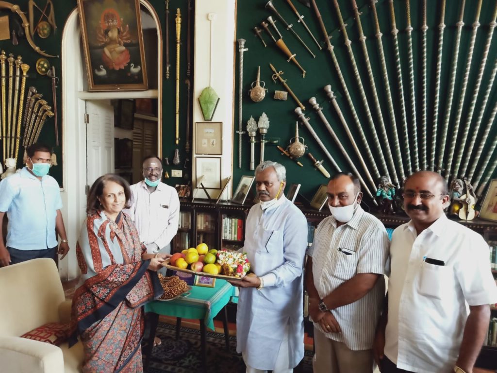 Mysuru: Former minister and MLA Murugesh Nirani on Wednesday invited scion of erstwhile royal family of Mysuru Pramoda Devi Wadiyar...