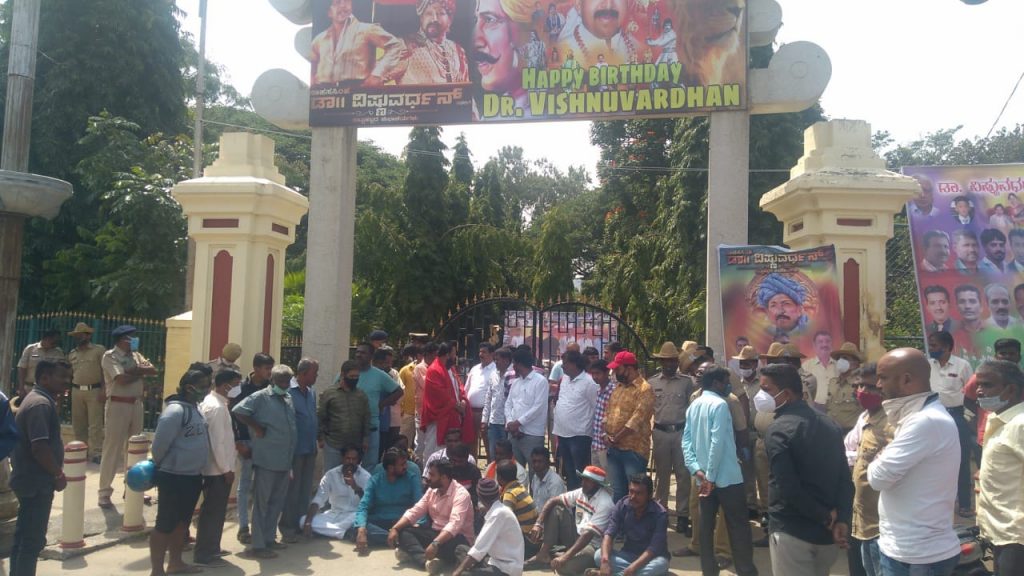 Mysuru: Tension prevailed for sometime as the Mysuru City Corporation (MCC) authorities cleared the statue of Kannada film actor late...