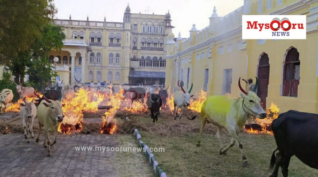 Mysuru: As many as 55 cattles including cows and bulls at Mysuru Palace took part in the ritual of 'Kittchu...