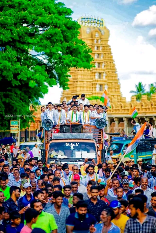 Mysuru: Karnataka Pradesh Congress Committee (KPCC) President D K Shivakumar took out a road show at temple town Nanjangud on...