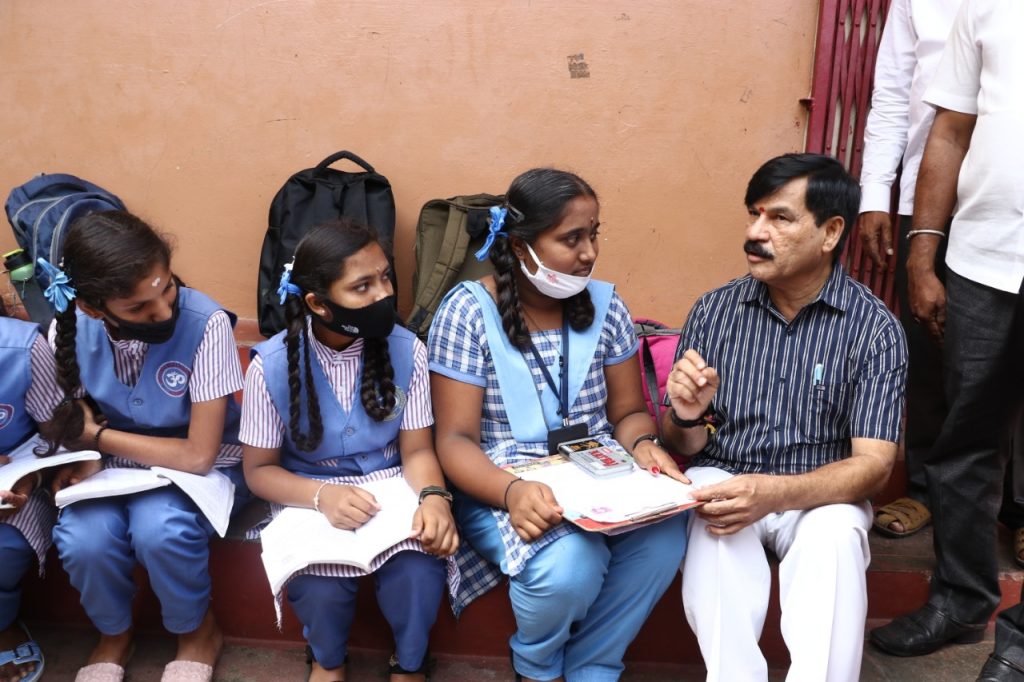 Mysuru: Former minister and K R MLA S A Ramadass on Monday distributed sweets and pens to the students appearing...