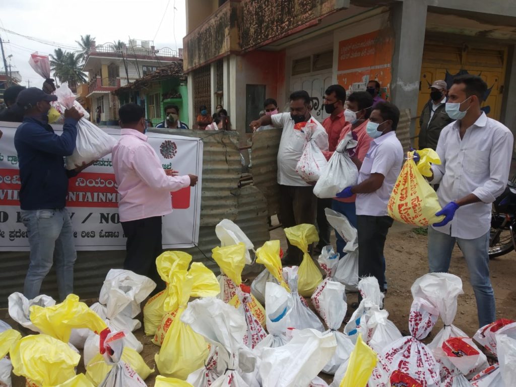Mysuru: Sa Ra Sneha Balaga distributed groceries to the families stuck in containment zones in K R Nagar town on...