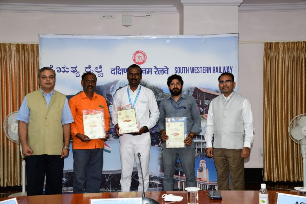 Mysuru: Three employees of South Western Railway – Anil Kumar C M, Vikas Kumar Barrodia and Vasudeva Naik – were...