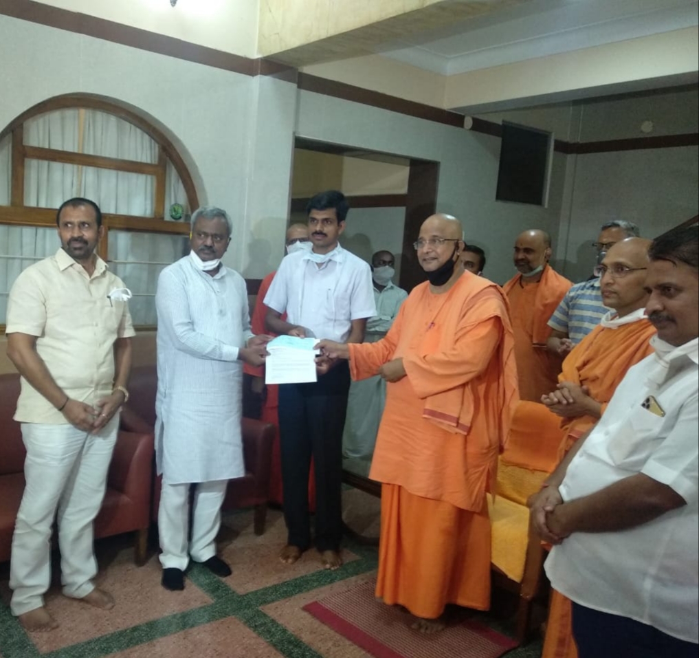 Mysuru: Sri Ramakrishna Vidyashala Old Students Association contributed Rs one lakh towards Chief Minister's Relief Fund Covid-19. Swami Muktidanandaji Adhyaksha...