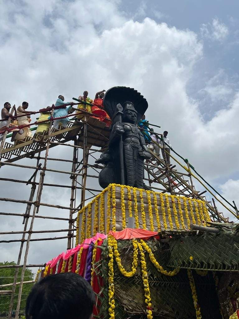 Mysuru: A 18 feet tall monolithic statue of Sri Subramanyeshwara Swamy was consecrated at Gattavadi in Kavalande hobli in Nanjangud...