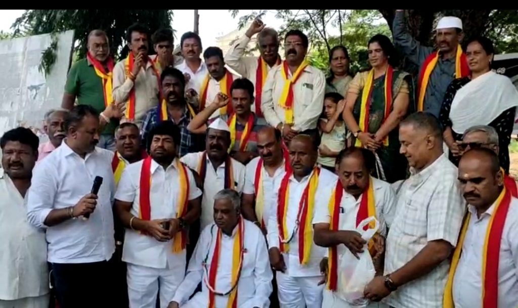 Mysuru: Chamarajanagar MP V Srinivas Prasad participated in a protest organised by Cauvery Kriya Samiti against releasing of Cauvery river...