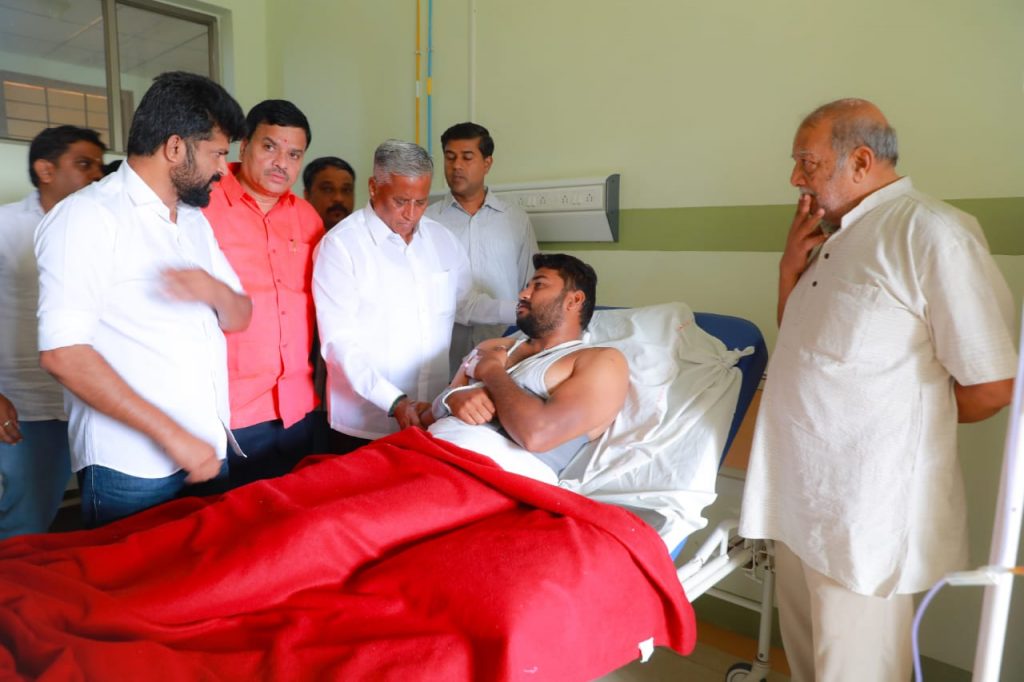 Mysuru: BJP candidate in Varuna Assembly constituency V Somanna and Mysuru- Kodagu MP Prathap Simha called on injured BJP worker...