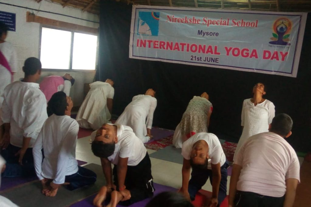 Mysuru: Students of Nireekshe Special School, at Ramakrishna Nagar in the city performed Yogasana on June 21, to mark international...