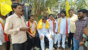 Mysuru: Veteran pro- Kannada leader and former MLA of Kannada Chaluvali Vatal Paksha Vatal Nagaraj, on Sunday staged a novel protest at Jayachamaraja Wadiyar Circle in the city.