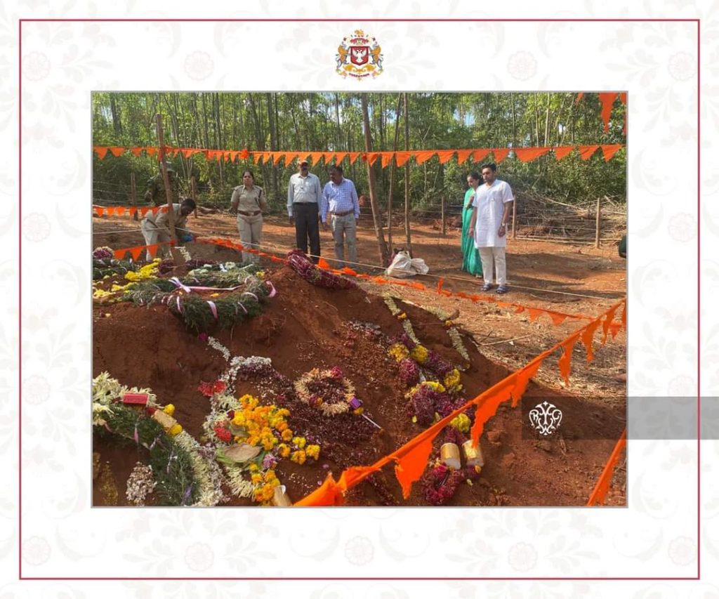 Yaduveer who has posted the photos of his visit on social media stated-Due to my travelling at the time, I was unable to attend the last rites of the elephant Arjuna. I was able to visit the place of his burial today, and pay my respects. May his soul attain peace in his liberation.