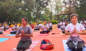 The programne was organised at Sougandhika Park in Kuvempunagar and various asanas like- Sooryanamaskar, pranayama, Shavasana, meditation and other asanas were taught on the occassion.