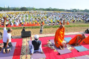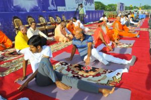 Barring Suttur Seer Sri Shivaratri Deshikendra and Avadhoota Datta peeth’s Ganapathy Sachchidananda Swamiji, the other religions heads Nirmalanandanatha Swamiji of Adhichunchanagiri mutt, Somanatha Swamiji of Mysuru branch mutt and Sir Khazi of Mysuru Syed Usman Sharief actively took part by performing various asanas on the specially erected dais.