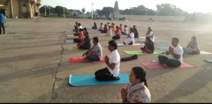 MCC Commissioner Shilpa Nag, Assistant Commissioner Shivanada Murthy took the lead of the officials in practicing yogasana.