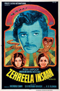 In Hindi it was titled- Zehreela Insaan and Rishi Kapoor enacted the lead role that was essayed with elan by Vishnuvardhan in the original. Ace director Puttanna Kanagal wielded the megaphone in Hindi too. The film was produced under the banner of Pragati Chitra International. It was released on November 20, 1974 two years after Naagarahaavu had hit screens on December 29, 1972. Though the original was a money spinner, it was not in Hindi.